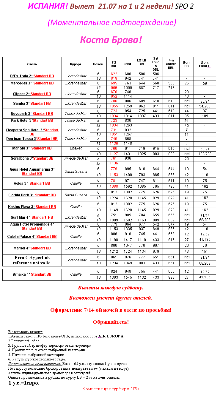 13 Июл 2012 19:11:15 ИСПАНИЯ Коста Брава 21.07 на 1 и 2 недели от фирмы ИВОЛГА