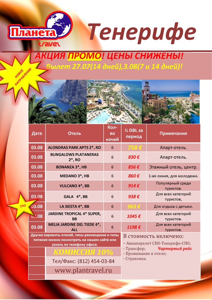 ИСПАНИЯ: ТЕНЕРИФЕ Акция ПРОМО: от 30.860 рублей от фирмы PLANETA TRAVEL