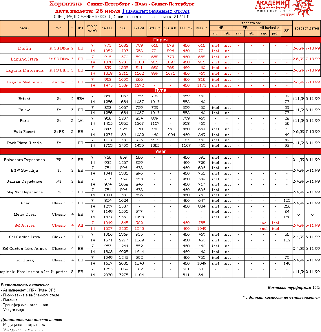18 Июл 2012 13:49:35 ХОРВАТИЯ, Пула 28.07 на 7/14 ночей от фирмы АКАДЕМИЯ