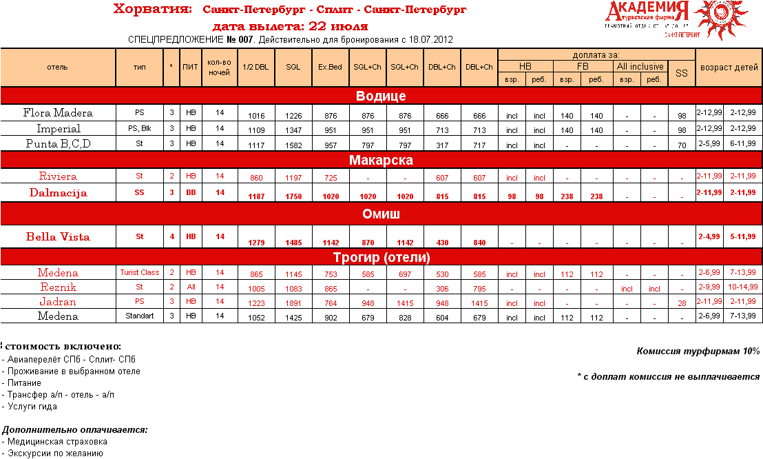 19 Июл 2012 12:08:06 ХОРВАТИЯ, СПЛИТ 22.07 на 14 ночей от фирмы АКАДЕМИЯ