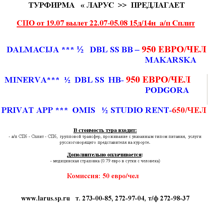 19 Июл 2012 14:57:28 ХОРВАТИЯ - 22.07-05.08 15д/14н а/п Сплит от фирмы ЛАРУС