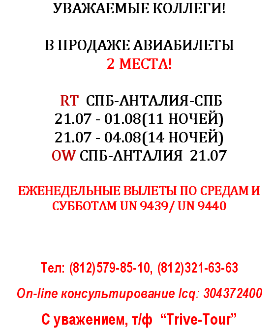 ТУРЦИЯ Анталия с 21.07 на 11 и 14 ночей от фирмы TRIVE ТУР |