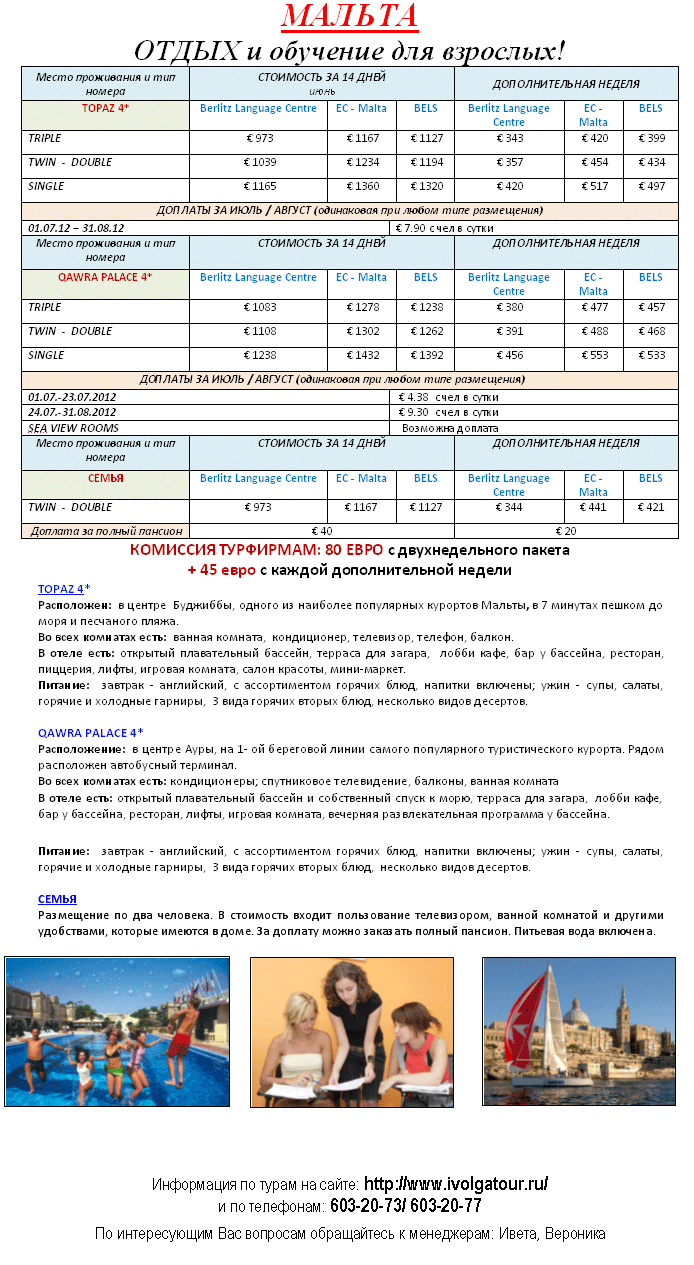 20 Июл 2012 22:41:24 МАЛЬТА ОТДЫХ и обучение для взрослых от фирмы ИВОЛГА