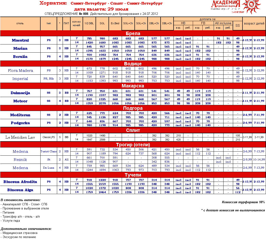 25 Июл 2012 13:27:27 ХОРВАТИЯ, 29.07 - 1 неделя и 2 недели Средняя Далмация Гарантированные отели от фирмы АКАДЕМИЯ
