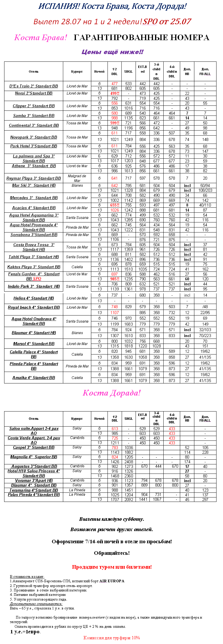 25 Июл 2012 15:06:36 ИСПАНИЯ. Коста Брава, Коста Дорада. 28.07 на 1 и 2 недели от 477 евро. Гарант. Места от фирмы ИВОЛГА