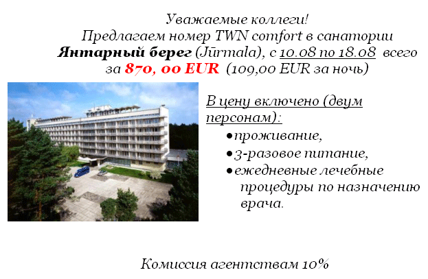 ЛАТВИЯ. Юрмала. Санаторий Янтарный берег 10.08-18.08 от фирмы ДАНКО