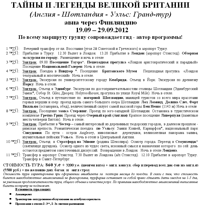 15 Авг 2012 19:43:57 АНГЛИЯ-ШОТЛАНДИЯ-УЭЛЬС рекламный тур 19.09-29.09 последние два места от фирмы ВИКТОРИЯ
