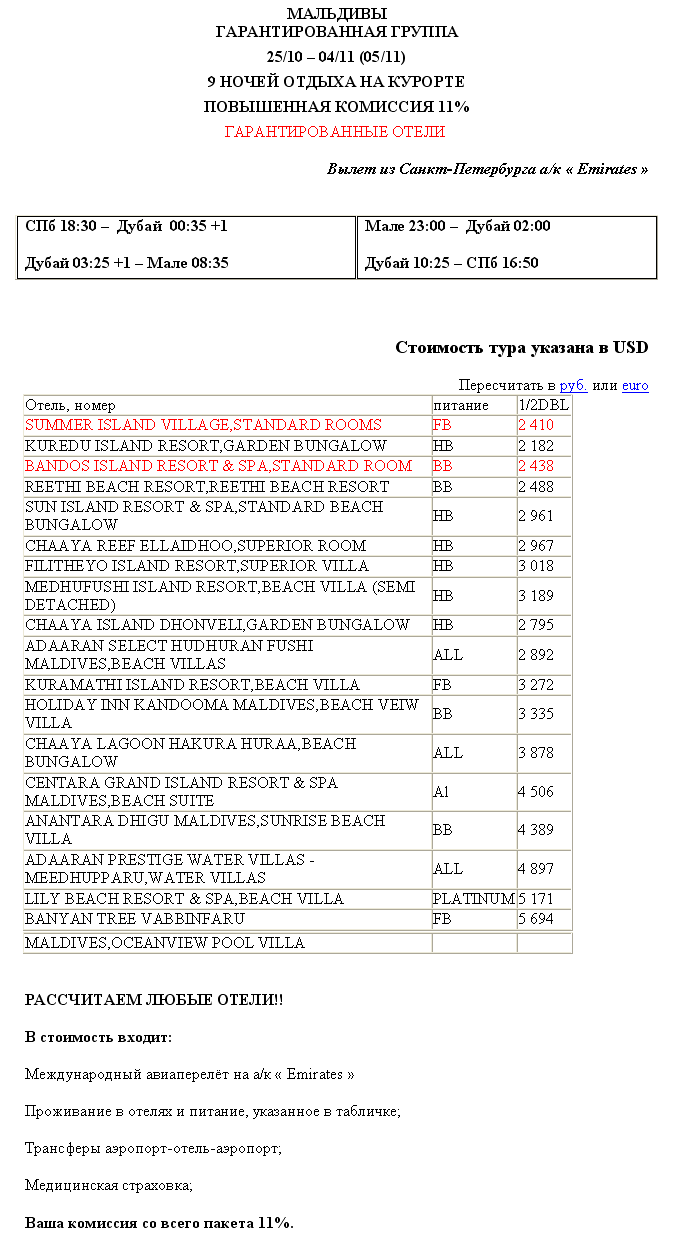 МАЛЬДИВЫ 25.10-05.11 гарант. группа от фирмы ПИТЕРТУР |