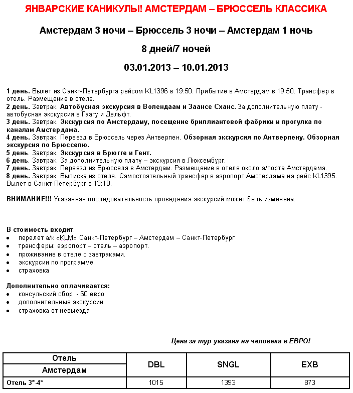 30 Авг 2012 11:41:54 БЕНИЛЮКС 03.01-10.01 Амстердам-Брюссель Классика, Январские Каникулы от фирмы OOSTMARKT