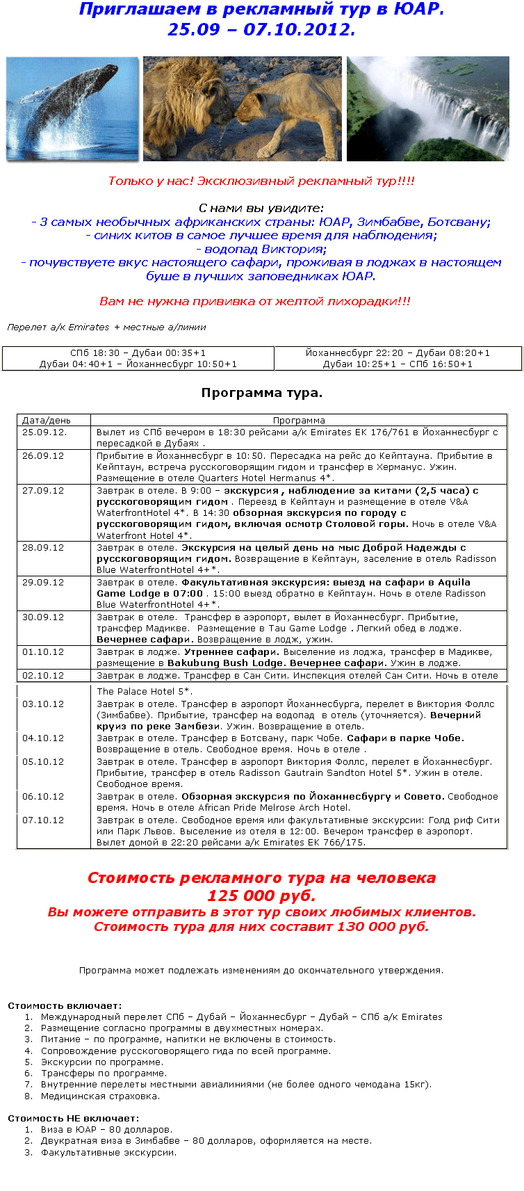 +7 (921) 939-81-99, е-mail pitert@dneprovoi.spb.ru, Skype: PiterDnepr, видео стран www.tours-tv.ru Ответственность за