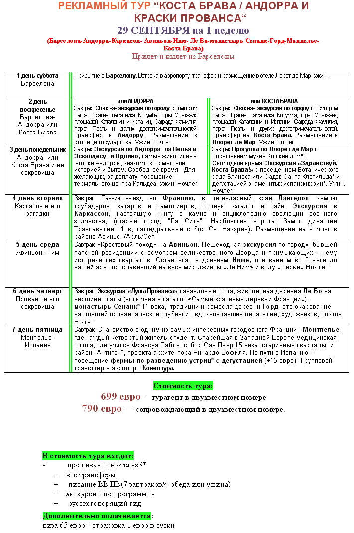 12 Сен 2012 18:40:28 ИСПАНИЯ-ФРАНЦИЯ 29.09-05.10 Рекламный тур""КОСТА БРАВА / АНДОРРА И КРАСКИ ПРОВАНСА" от фирмы ИВОЛГА