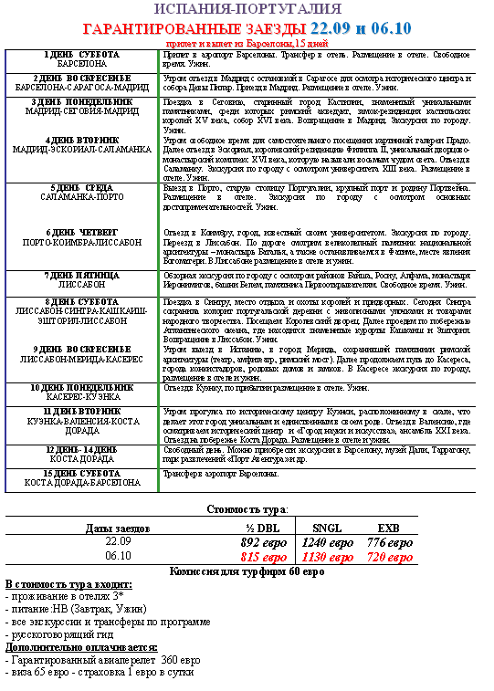 20 Сен 2012 12:41:20 ИСПАНИЯ - ПОРТУГАЛИЯ, экскурсионный тур на 22.09 и 06.10. Гарантированные места от фирмы ИВОЛГА