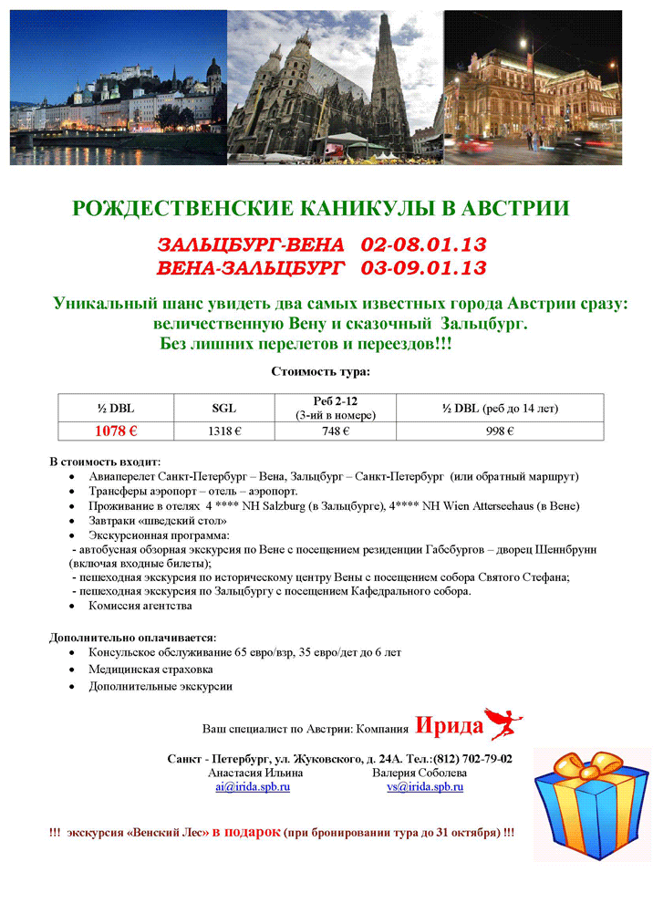 06 Окт 2012 00:27:35 АВСТРИЯ - с 02.01, 03.01 - Рождественские Каникулы - туры Зальцбург-Вена и Вена-Зальцбург от фирмы ИРИДА