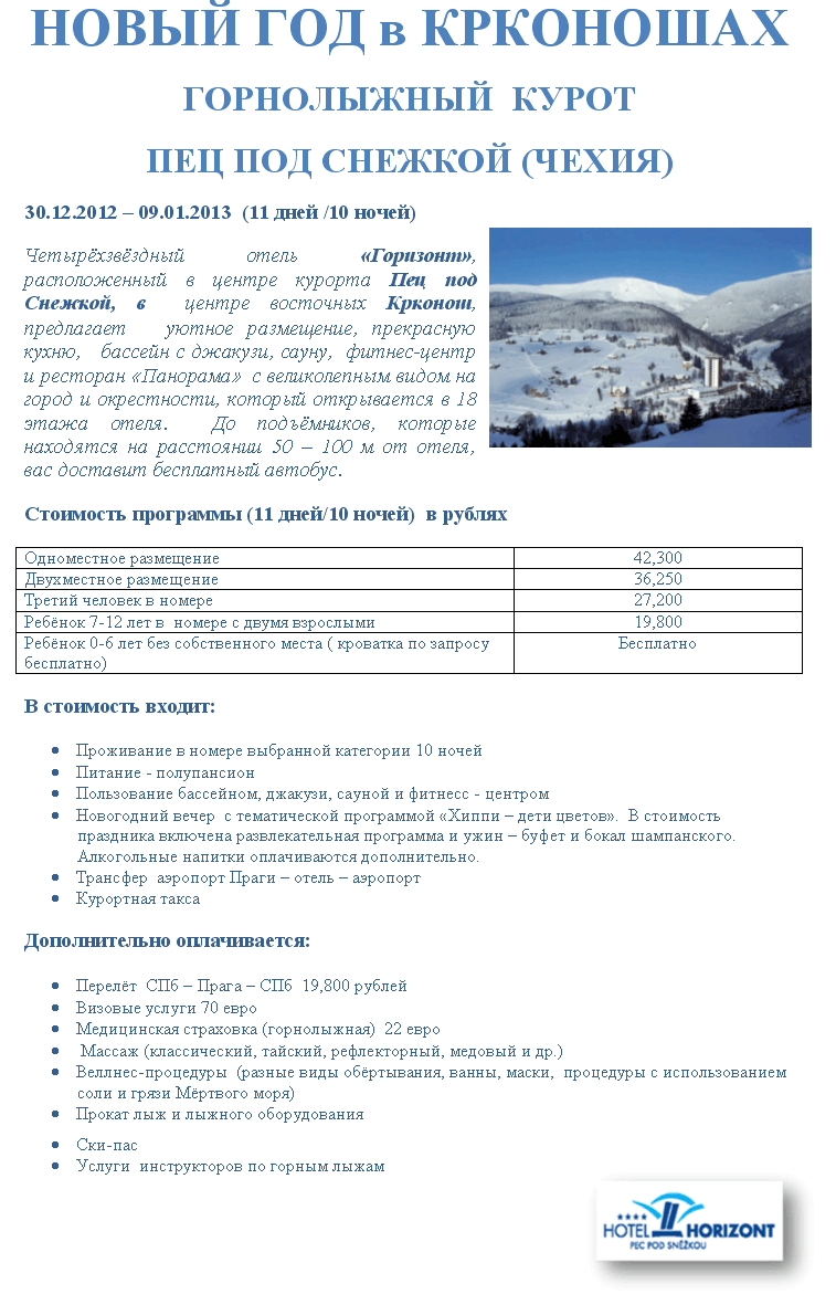 09 Окт 2012 13:28:58 ЧЕХИЯ - горные лыжи - Новый Год в Крконошах 30.12-09.01 от фирмы ТЕРЦИЯ