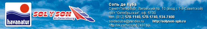 soldecuba@yandex.ru тел. (812) 578-1140, 578-1740, 934-7408 http://solyson-spb.ru