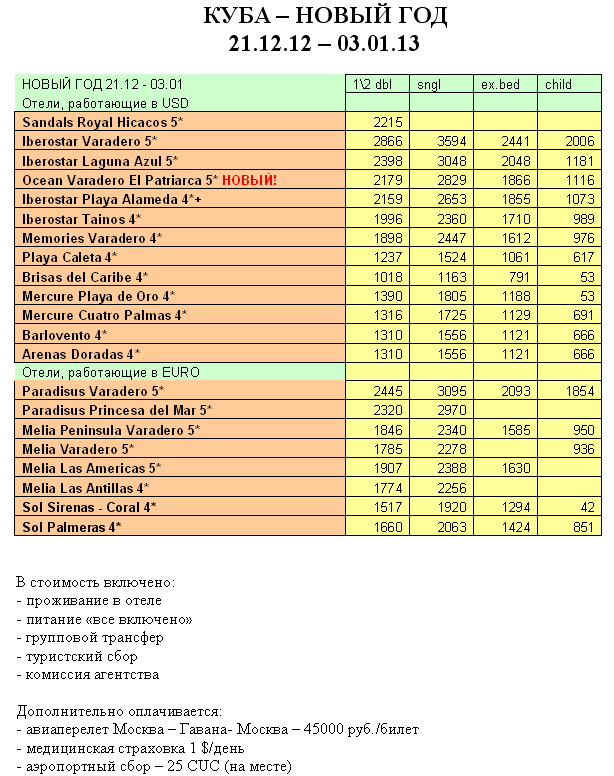 17 Окт 2012 05:12:23 КУБА - Новый Год 21.12-03.01 от фирмы СОЛЬ ДЕ КУБА