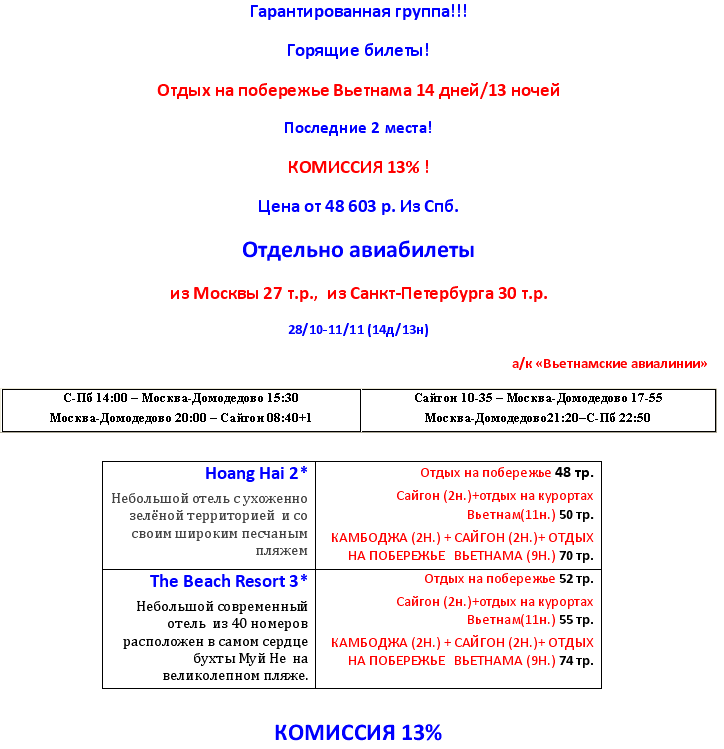 ВЬЕТНАМ гарант. группа 28.10-11.11 от 48 т.р. от фирмы ПИТЕРТУР |