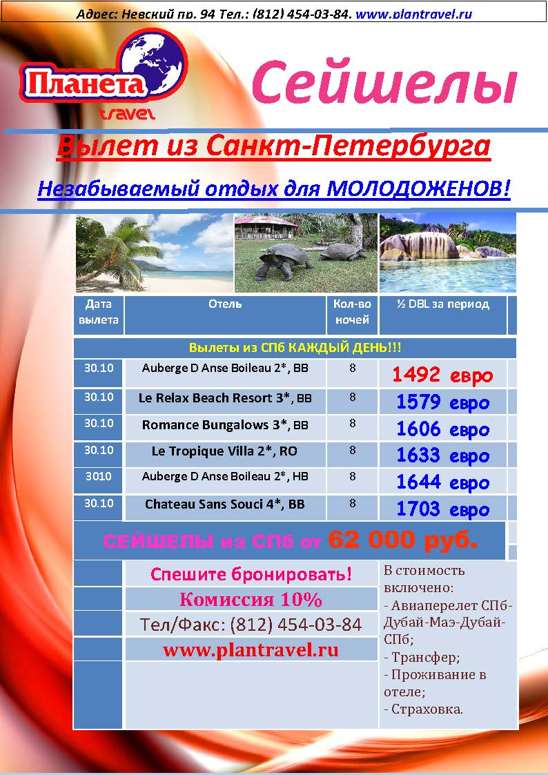 СЕЙШЕЛЫ из СПб от 1492 евро от фирмы ПЛАНЕТА TRAVEL