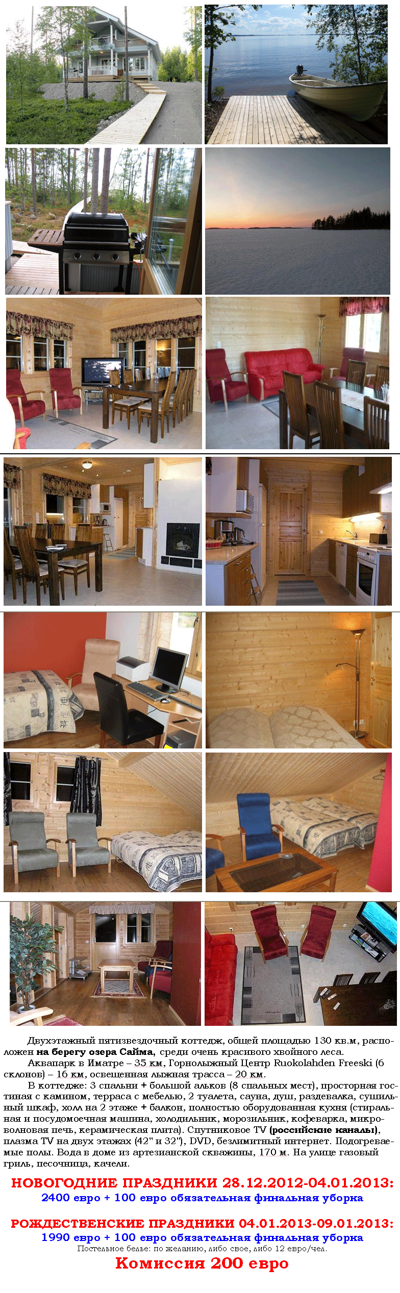 23 Окт 2012 23:49:01 ФИНЛЯНДИЯ - КОТТЕДЖИ 5* НА НОВЫЙ ГОД И РОЖДЕСТВО! РЕГИОН ИМАТРА! САЙМА! 8 ЧЕЛ от фирмы БЮРО ПУТЕШЕСТВИЙ