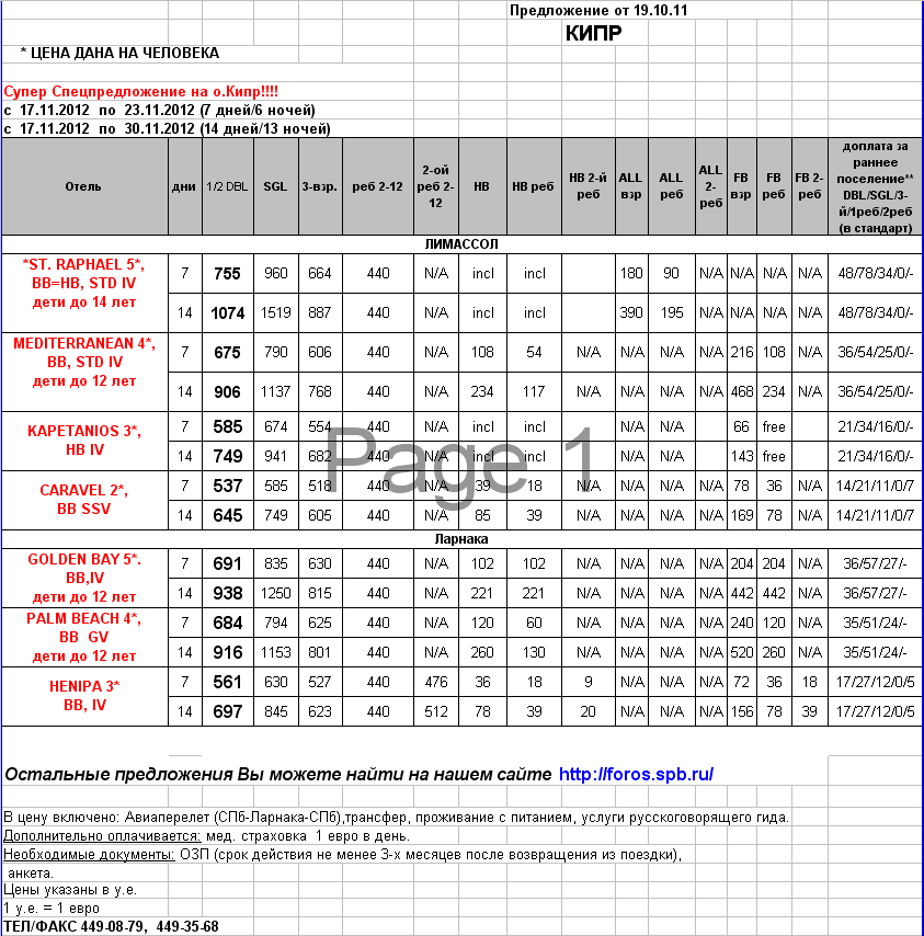 26 Окт 2012 11:10:25 КИПР Спец. цены на заезд 17.11 (6 и 13 ночей) от фирмы ФОРОС