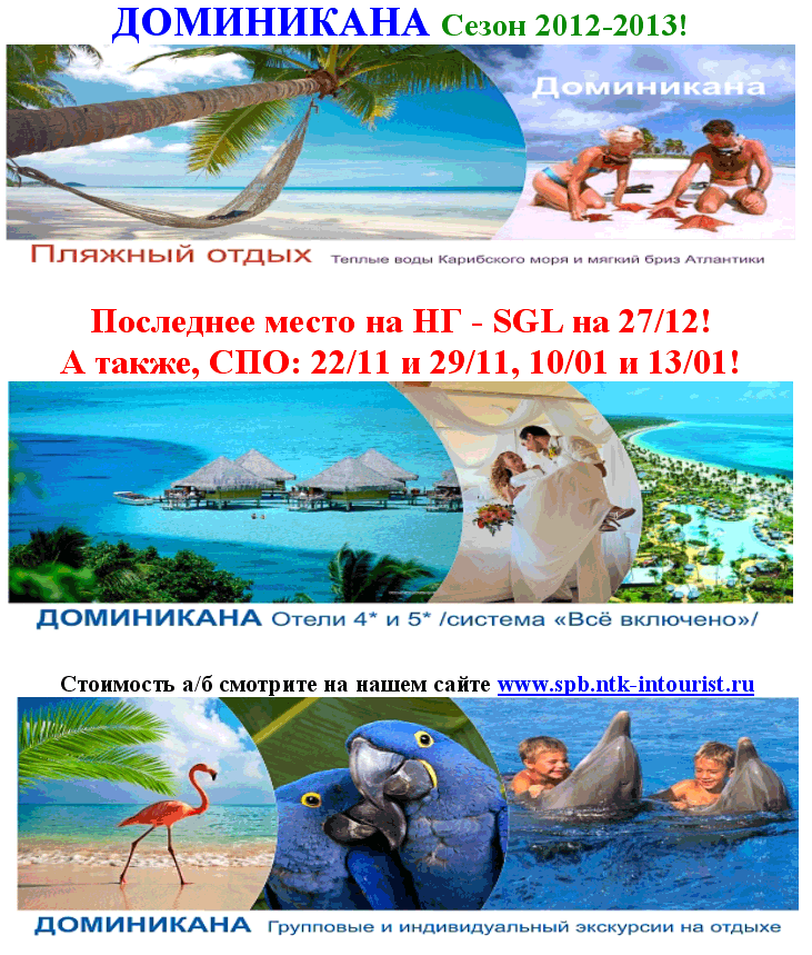 26 Окт 2012 15:49:49 ДОМИНИКАНА 22.11, 29.11, 27.12 10.01, 13.01 - спо от фирмы ИНТУРИСТ