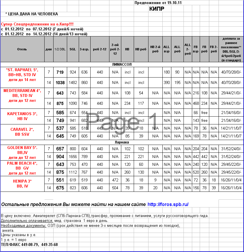 29 Окт 2012 11:41:31 КИПР Спец. цены на заезд 01.12 (6 и 13 ночей) от фирмы ФОРОС
