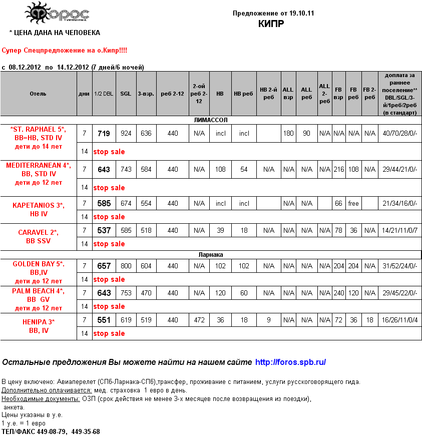 КИПР 08.12-14.12 от фирмы ФОРОС |