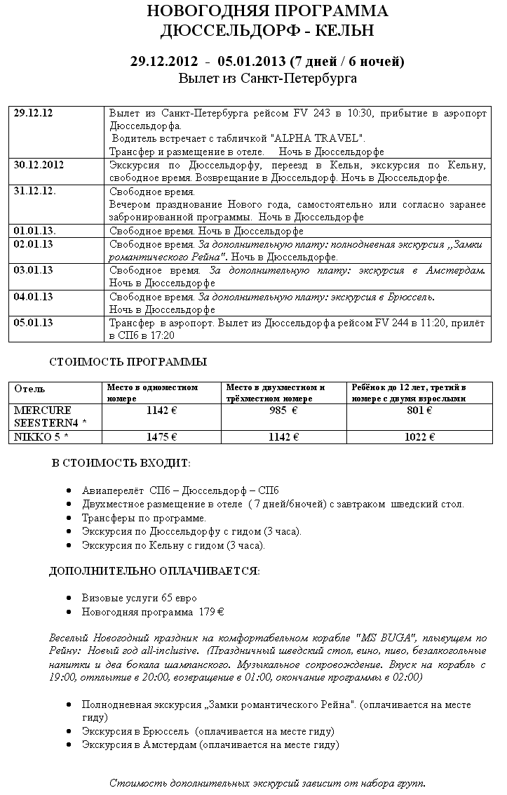 01 Ноя 2012 17:52:13 ГЕРМАНИЯ - Дюссельдорф-Кельн 29.12-05.01 на Новый Год из СПб от фирмы ТЕРЦИЯ