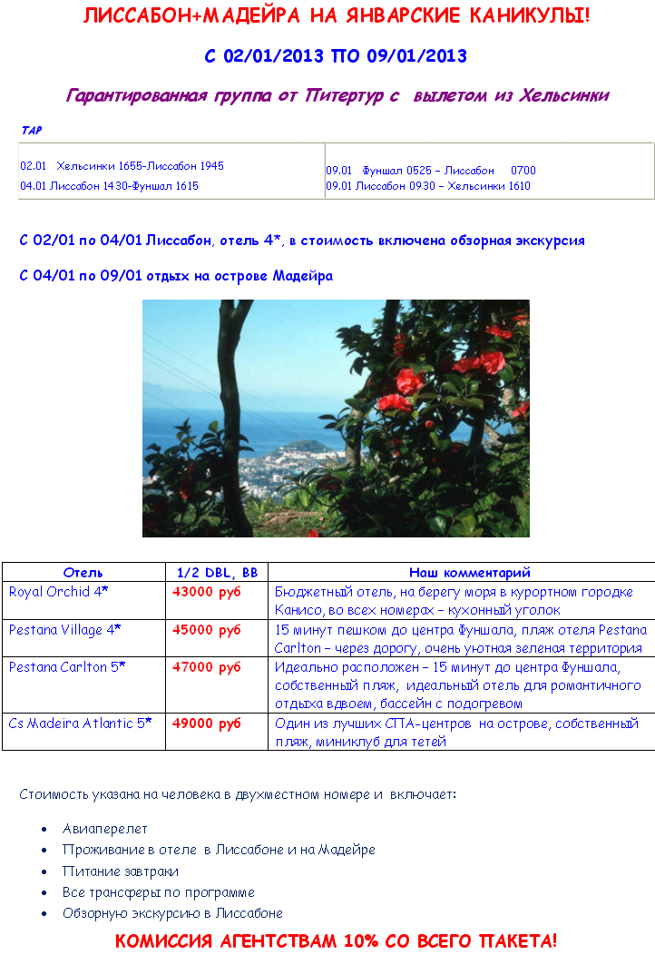 ПОРТУГАЛИЯ - Лиссабон-МАДЕЙРА 02.01-09.01 от 43 т.р. от фирмы ПИТЕРТУР |