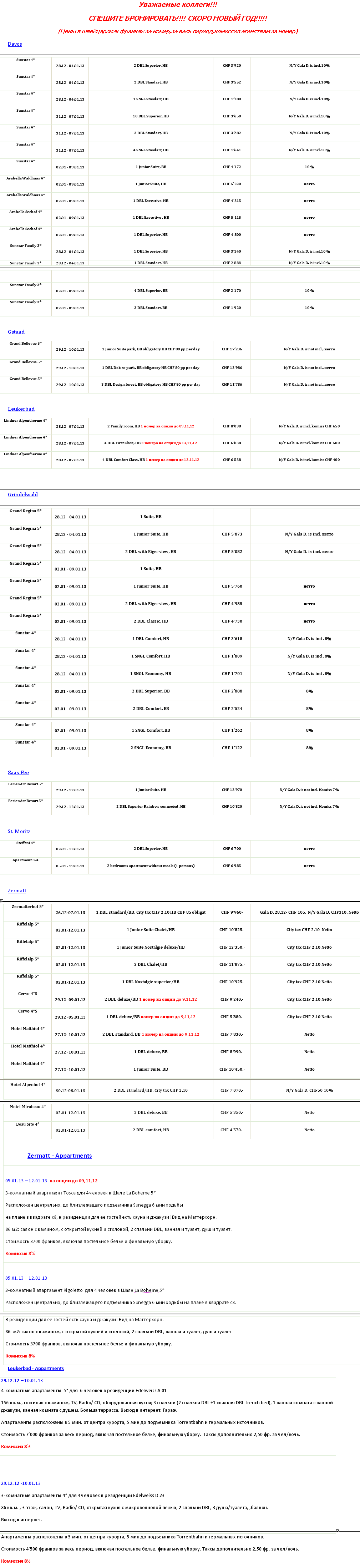 08 Ноя 2012 17:45:20 ШВЕЙЦАРИЯ - гарант. номера на Новый Год от фирмы OPEN UP