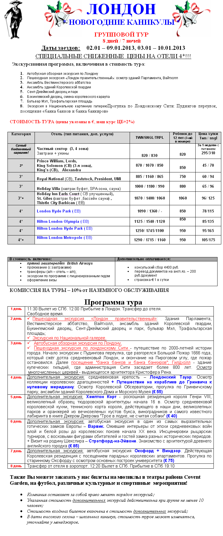 20 Ноя 2012 14:44:35 ВЕЛИКОБРИТАНИЯ - ЛОНДОН на Рождество - 02.01-09.01, 03.01-10.01 спо на ОТЕЛИ 4* от фирмы ИМПЕРИАЛ