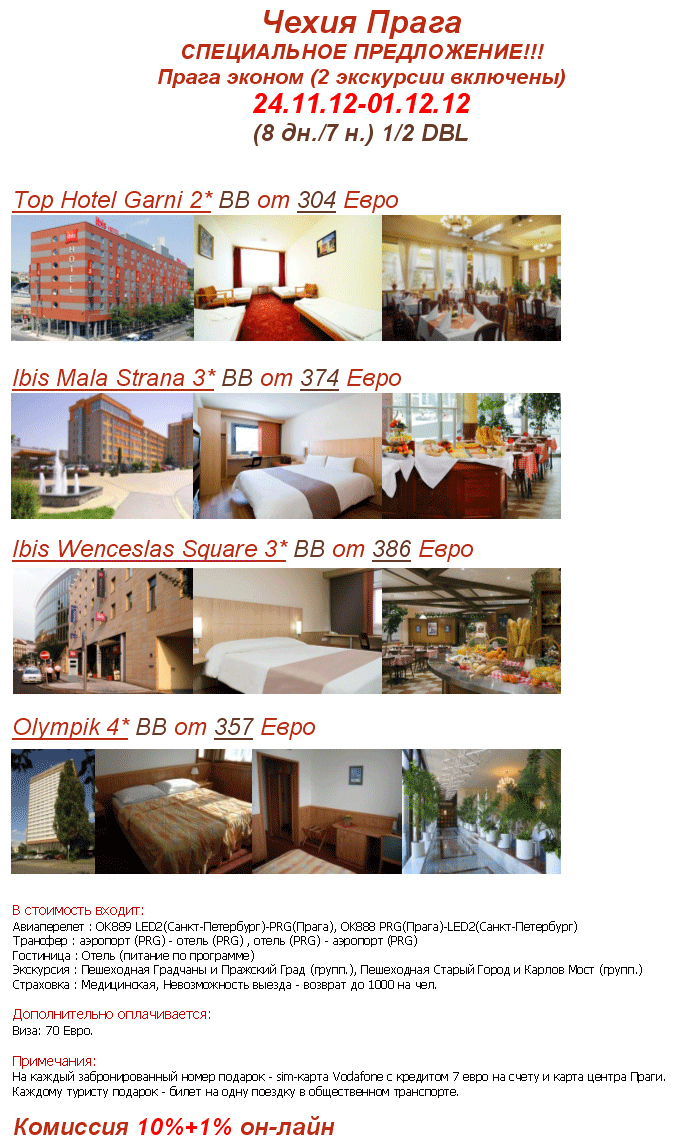 20 Ноя 2012 15:03:23 ЧЕХИЯ Прага 24.11-01.12 (8 дн./7 н.) от 304 Евро из СПб от фирмы VEDI TOUR GROUP