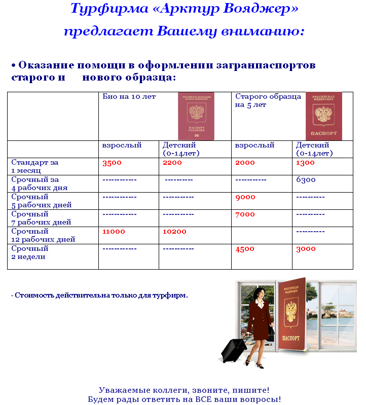 21 Ноя 2012 12:54:18 ОФОРМЛЕНИЕ Загранпаспортов старого образца и БИО (в т.ч. СРОЧНОЕ) от фирмы АРКТУР ВОЯДЖЕР