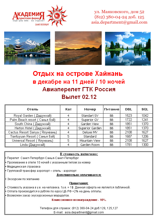 24 Ноя 2012 15:24:49 КИТАЙ. Качественный отдых по цене "эконом" 02.12.12 10 ночей от фирмы АКАДЕМИЯ