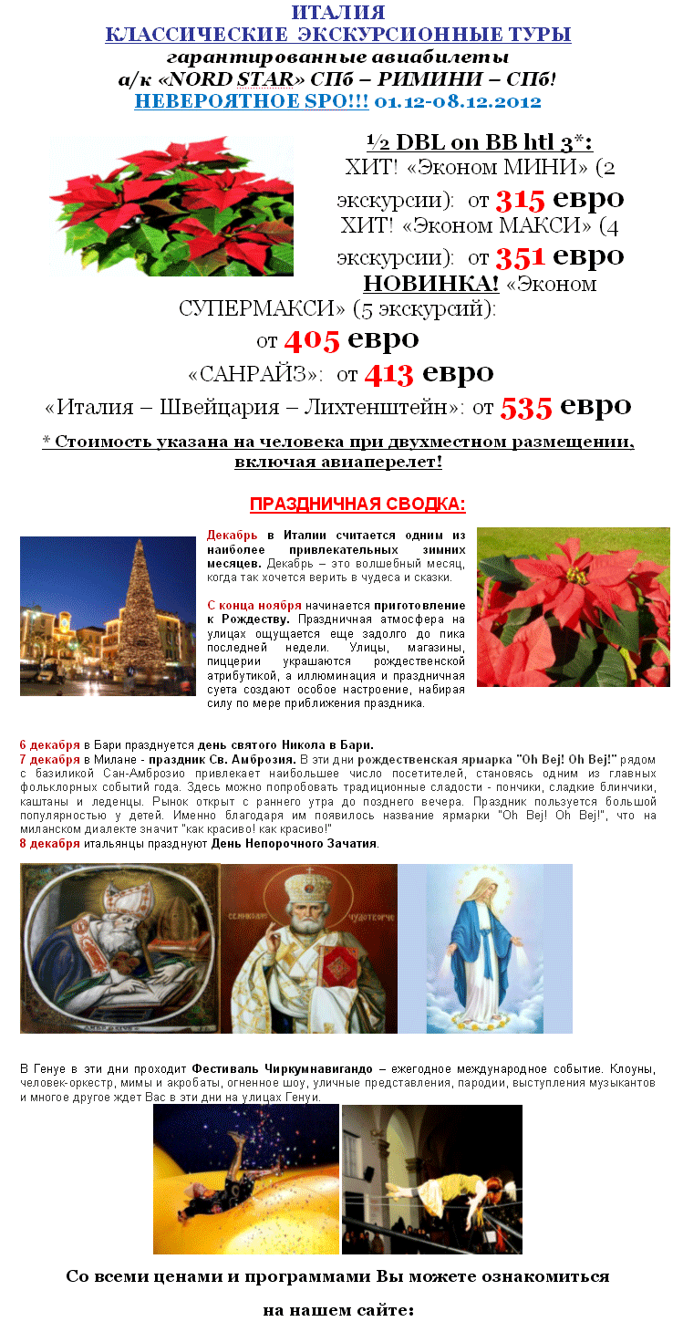 28 Ноя 2012 11:01:53 ИТАЛИЯ экскурсионные туры на 01.12 - СПО от фирмы СОЛВЕКС
