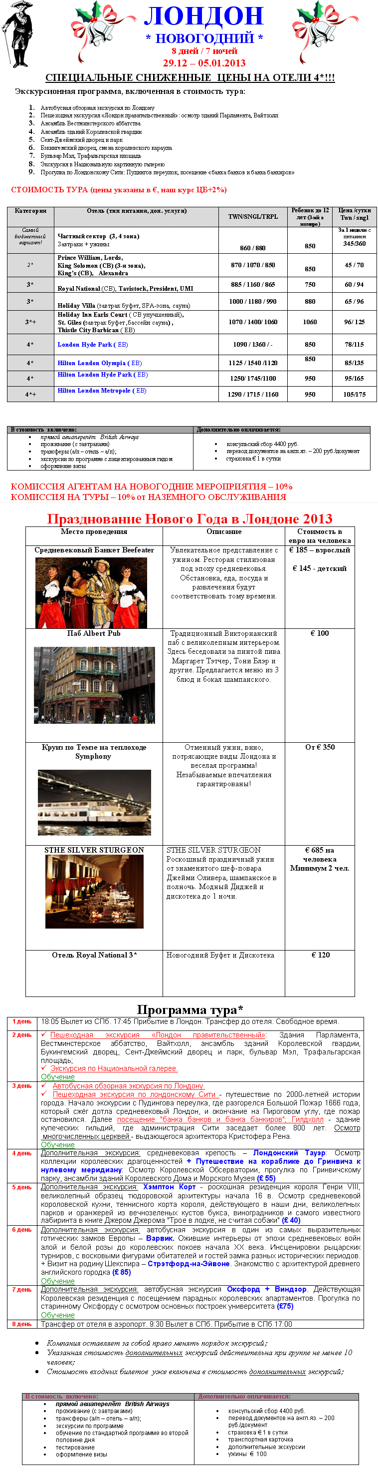 03 Дек 2012 13:41:36 ВЕЛИКОБРИТАНИЯ - ЛОНДОН 29.12-05.01 - СПО на ОТЕЛИ 4* от фирмы ИМПЕРИАЛ