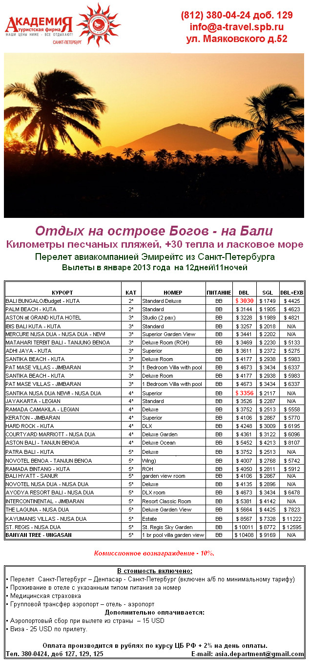 04 Дек 2012 17:00:28 ИНДОНЕЗИЯ о. Бали Отдых на острове Богов от фирмы АКАДЕМИЯ