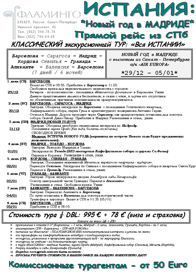 05 Дек 2012 11:59:22 ИСПАНИЯ 29.12-05.01 "Вся Испания" от фирмы ФЛАМИНГО