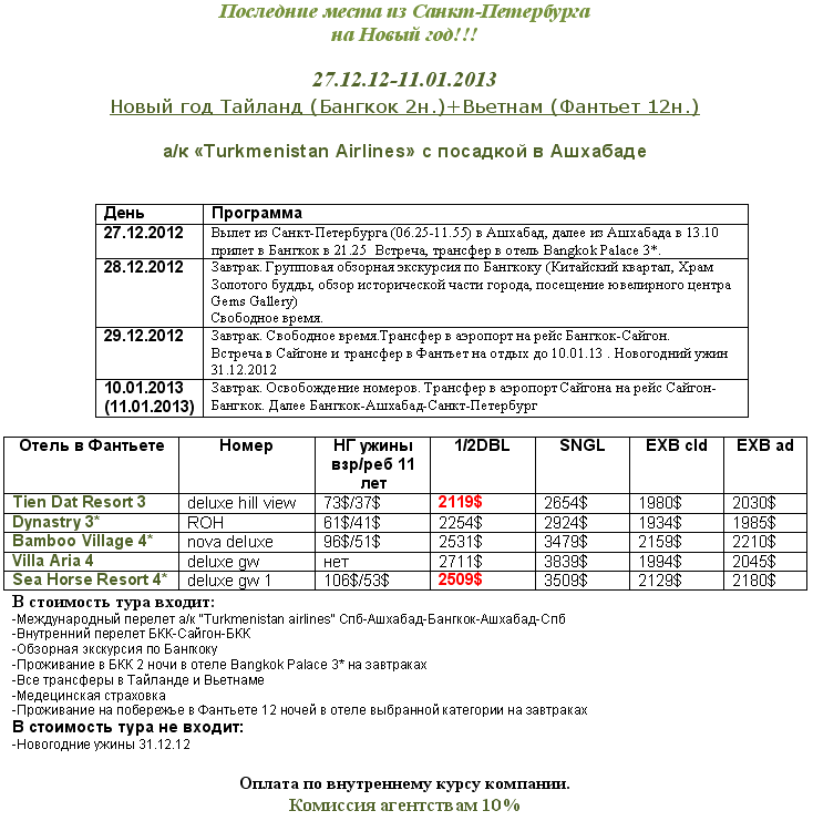 06 Дек 2012 10:56:41 ТАИЛАНД-ВЬЕТНАМ 27.12-11.01 Бангкок(2н) - Фантьет(12н) на Новый Год от фирмы ITM GROUP