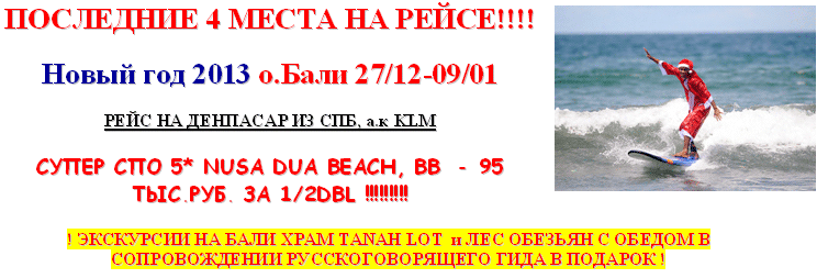 ИНДОНЕЗИЯ - ПОСЛЕДНИЕ 2 МЕСТА 27.12 Бали из СПБ. Гарантированный перелет. КОМИССИЯ -11% от фирмы ПИТЕРТУР |