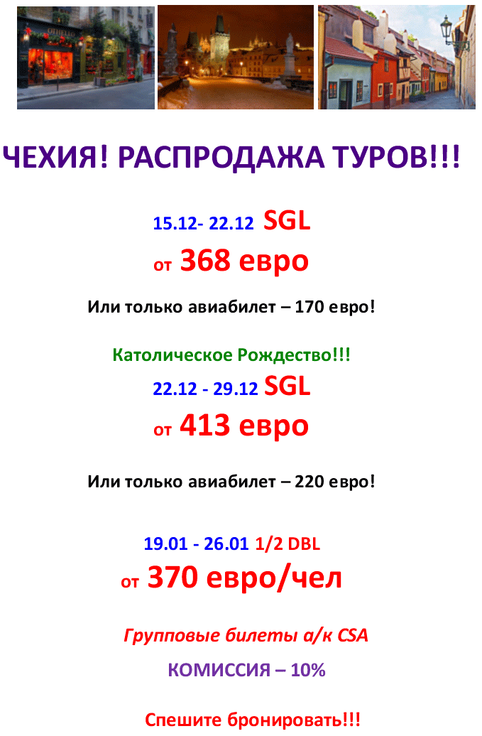 10 Дек 2012 13:59:30 ЧЕХИЯ с 15.12, 22.12, 19.01 - спо SGL от 368 евро от фирмы ИНТУРИСТ