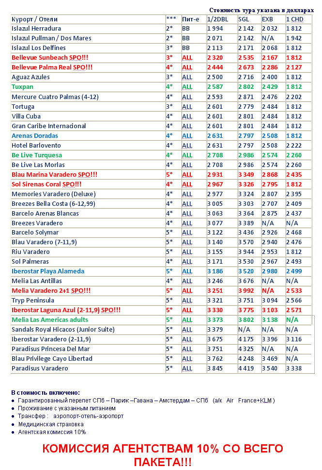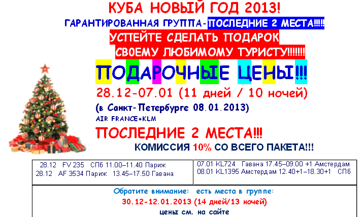 11 Дек 2012 14:51:10 КУБА 28.12-07.01 на Новый Год от 62 т.р, ком. 10% - ДВА места от фирмы ПИТЕРТУР