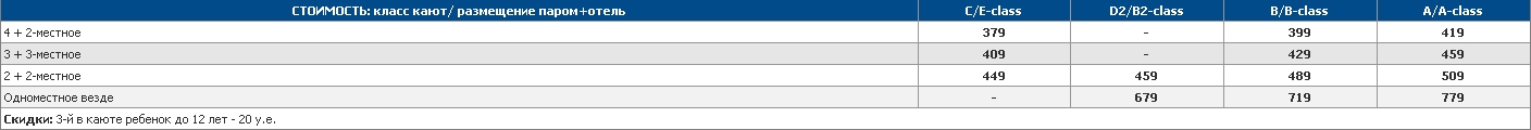 “EUROPA”, размещение в каютах выбранного класса, отправление в