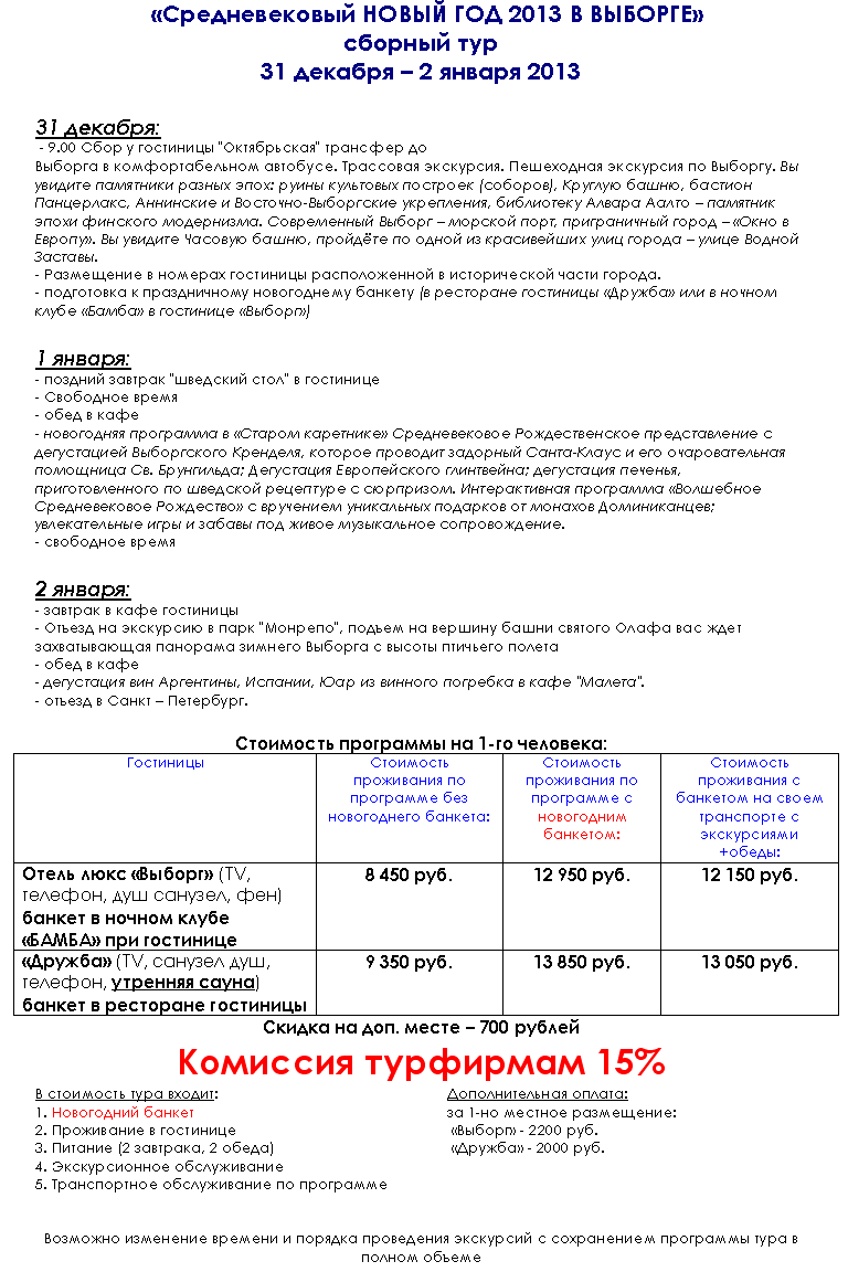 13 Дек 2012 13:46:25 РОССИЯ - Выборг 31.12-02.01 "Средневековый Новый год" от фирмы ЛАДЬЯ
