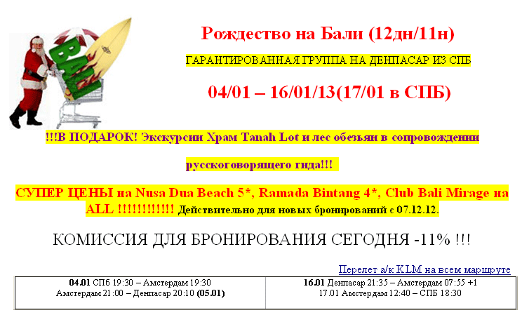 ИНДОНЕЗИЯ - Денпасар на РОЖДЕСТВО от 62т.р. за тур из СПБ. ЭКСКУРСИИ В ПОДАРОК ПОВЫШЕННАЯ КОМ. - 11% от фирмы ПИТЕРТУР |