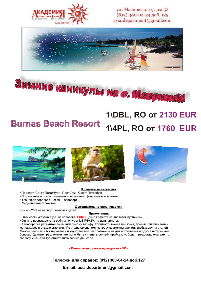 14 Дек 2012 11:45:49 МАВРИКИЙ. Зимние каникулы по супер ценам от 2130 EUR 1/DBL - все отдыхают от фирмы АКАДЕМИЯ
