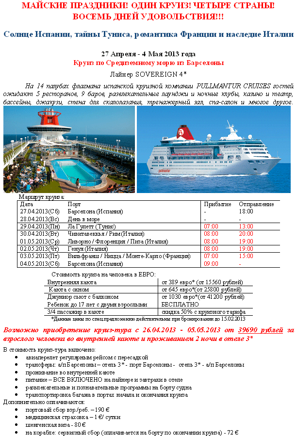 21 Дек 2012 17:12:27 КРУИЗ 27.04-04.05 по Средиземному морю из Барселоны от фирмы ФОРУМИНТ ПЛЮС