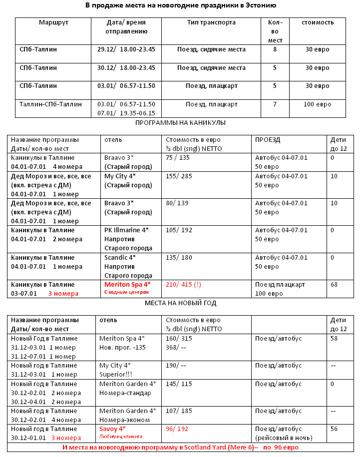 24 Дек 2012 14:13:50 ЭСТОНИЯ на Новый год и Каникулы - Сводка мест от фирмы ЛАС ФЛОРЕС