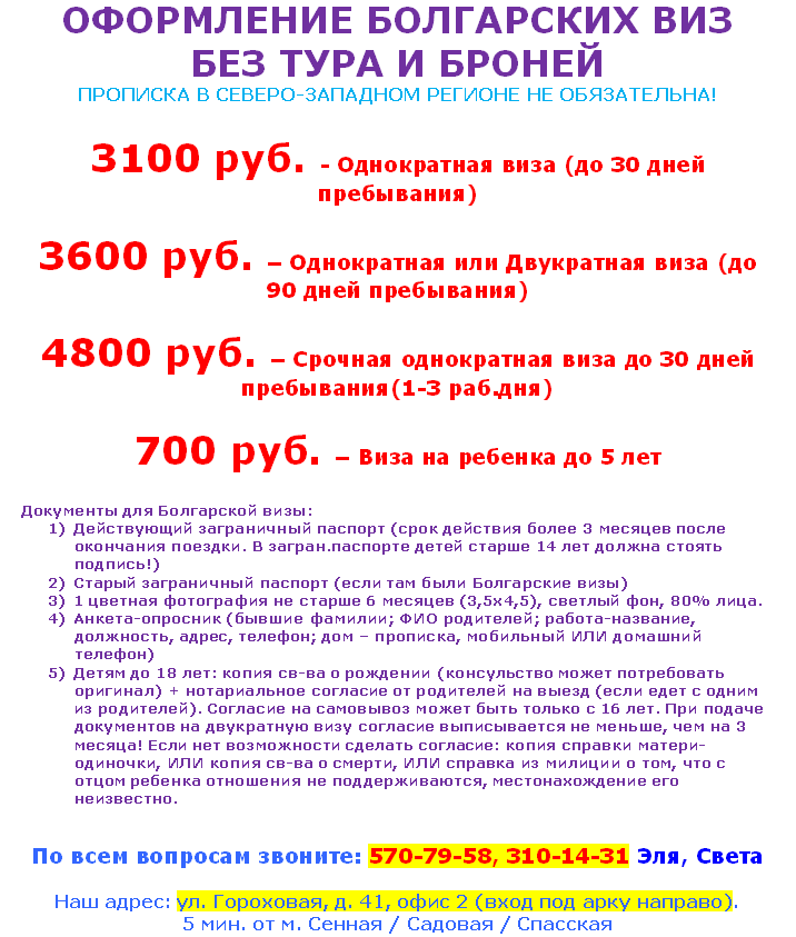 24 Дек 2012 16:11:55 ОФОРМЛЕНИЕ ВИЗ в Болгарию (без тура и броней, прописка в СЗ регионе не обязательна) от фирмы ТВОЙ ТУР
