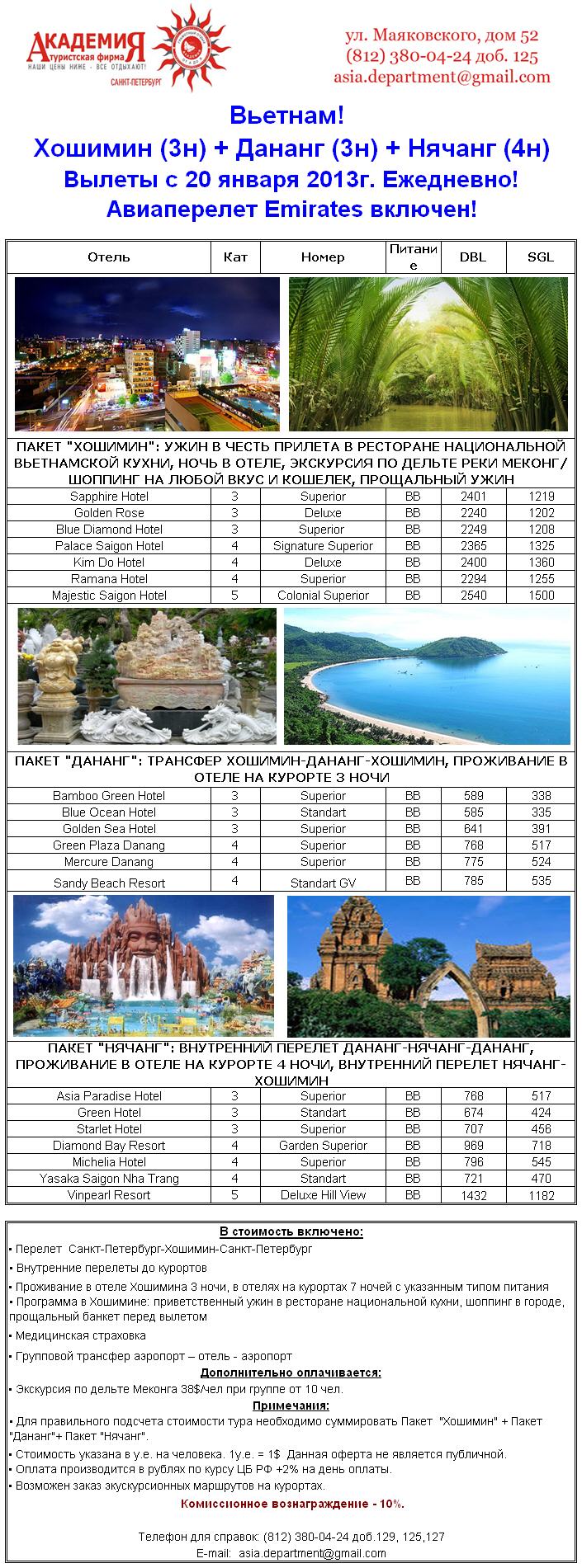 11 Янв 2013 11:37:39 ВЬЕТНАМ. Эксклюзивный комбинированный тур Хошимин - Дананг - Нячанг от фирмы АКАДЕМИЯ